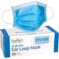 ForPro Single Use Ear Loop Mask, 3-Ply Disposable Face Mask with Elastic Ear Loop, Breathable, Non-Woven, Hypoallergenic, Blue, 50-Count